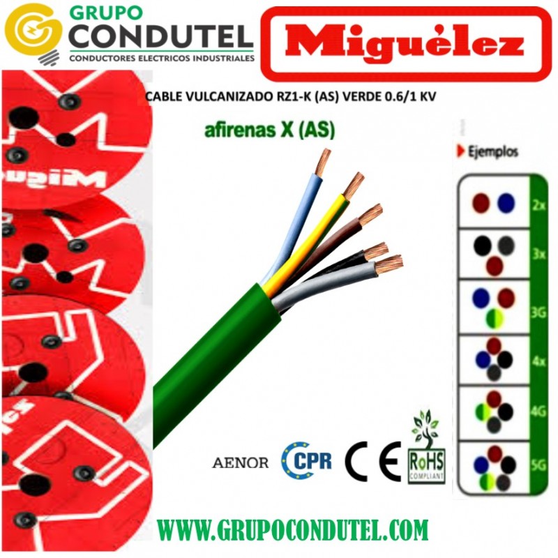 CABLE VULCANIZADO VERDE RZ1-K (AS) 5G4MM MIGUELEZ